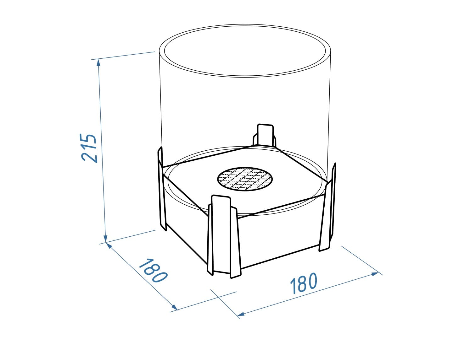 Представляет собой металлический внешний корпус с встроенным топливным блоком Lux Fire 150-2 на декоративных ножках в виде Близнецов. Огонь ограничивается стеклянным закаленным плафоном диаметром 180 мм.Среднее время горения 3 часа