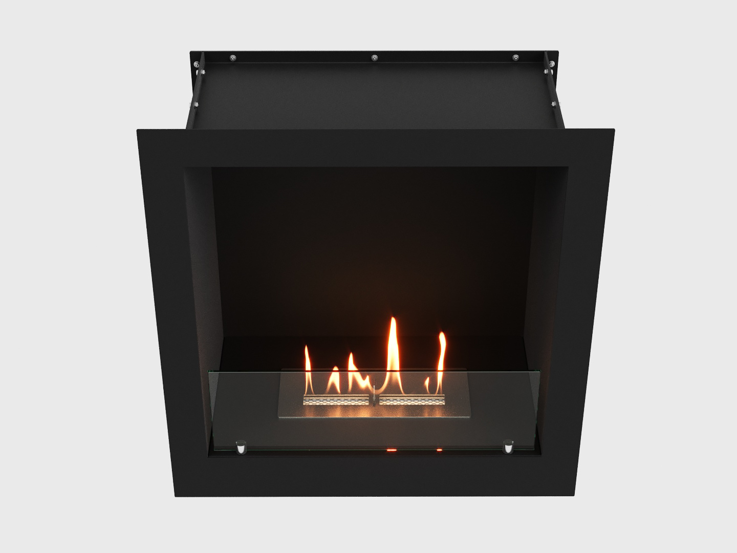 Открытый с фронтальной стороны камин на биотопливе предназначен для размещения в стены, ниши или короба.
